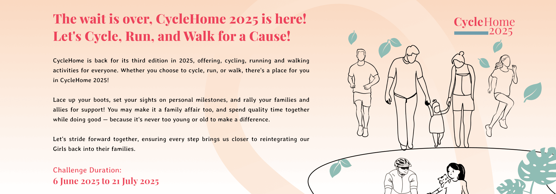 Get ready to pedal, run or walk, win attractive prizes, and show off your CycleHome spirit!